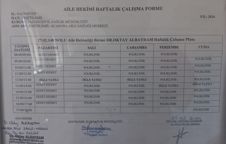 Hekimlerimizin Çalışma Saatleri İçin