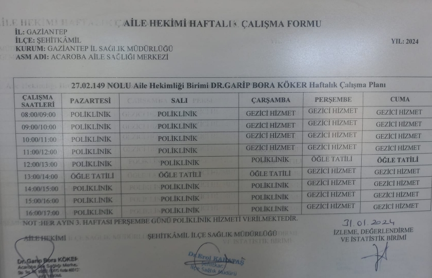 Aile Sağlığı Merkezimizde Görev Yapan Aile Hekimlerimizin Listesi İçin